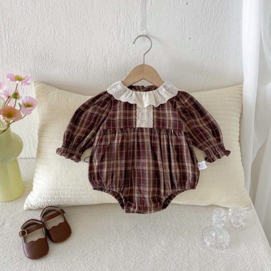 Brown Checked Romper with Bow