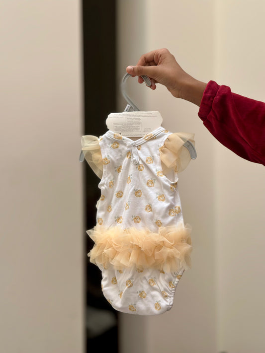 Baby Romper in Yellow Floral with Headband and Shoes