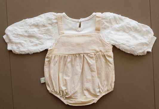 Beige Soft Net Romper with Black Ribbon