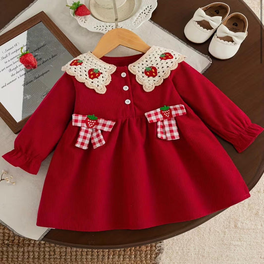 🍓 Strawberry Charm Winter Dress for Girls