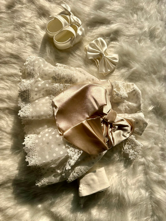 Newborn Party Wear Frock with Headband, Stockings and Shoes